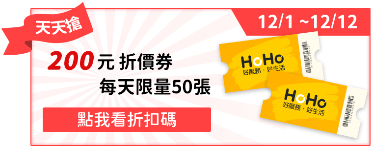 2. 折扣碼可用於HoHo全站單一服務滿3000元即可折抵200元。