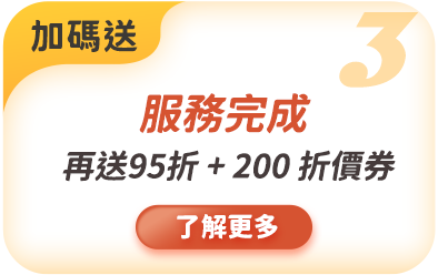 • 注意事項:須於2026/2/28前服務完成,始符合活動資格。如有取消訂單、退款、無法服務等情況,則不符合活動資格。