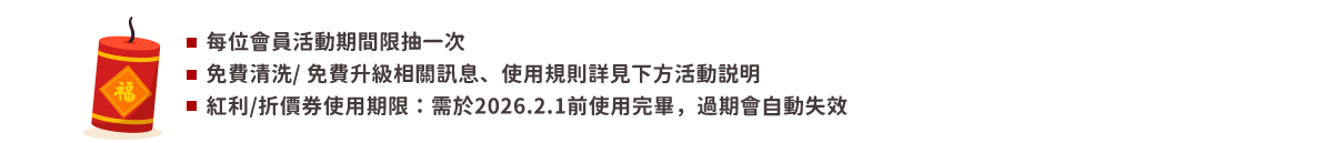 2.請於2026/2/1前使用完畢,逾期自動失效。